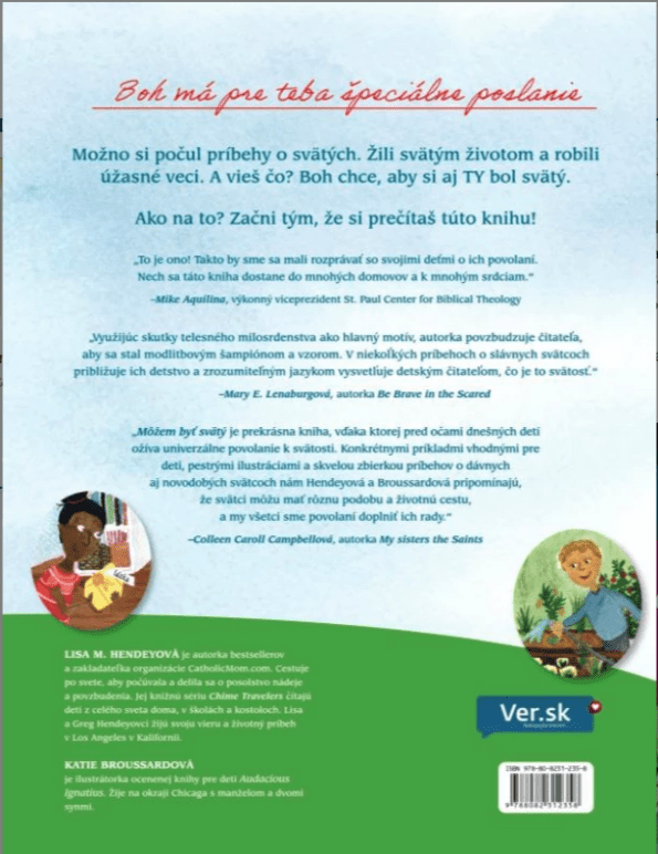 „Môžem byť svätý je prekrásna kniha, vďaka ktorej pred očami dnešných detí ožíva univerzálne povolanie k svätosti. Konkrétnymi príkladmi vhodnými pre deti, pestrými ilustráciami a skvelou zbierkou príbehov o dávnych aj novodobých svätcoch nám Hendeyová a Broussardová pripomínajú, že svätci môžu mať rôznu podobu a životnú cestu, a my všetci sme povolaní doplniť ich rady.“ – Colleen Carroll Campbellová, autorka My sisters the Saints